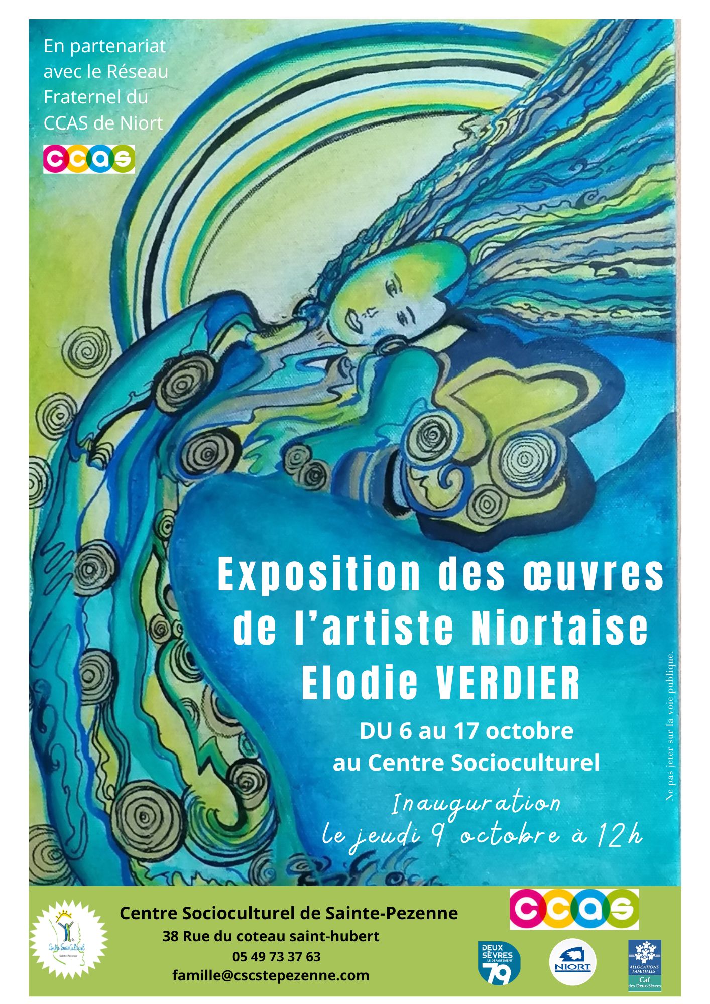 Exposition d’Elodie Verdier en partenariat avec le Réseau Fraternel du CCAS de Niort du 6 au 17 octobre 2025 au Centre Socioculturel de Sainte-Pezenne à Niort.