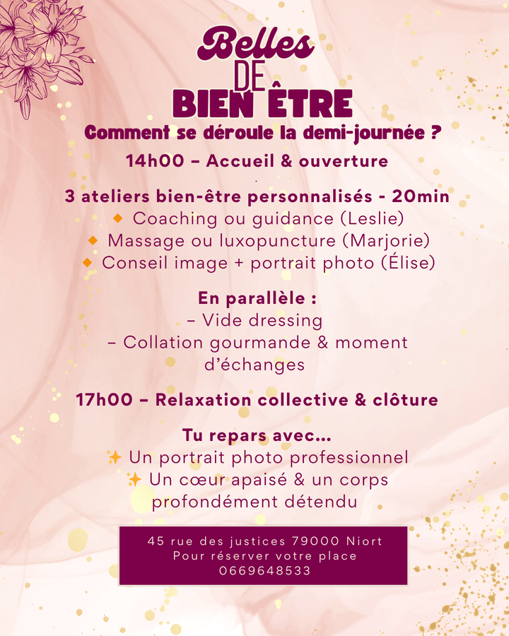 Le dimanche 23 novembre 2025 à Niort (45 rue des justices quartier Brizeau) on t’invite à vivre une demi-journée de bien-être unique :