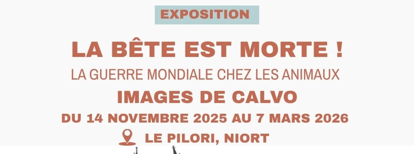 Venez découvrir l’exposition « La bête est morte ! La guerre mondiale chez les animaux » – images de Calvo – du 14 novembre 2025 au 7 mars 2026 à l’espace d’arts visuels du Pilori à Niort.