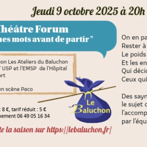 THÉÂTRE FORUM – Soins palliatifs- Production Estuaire – Écriture Les Ateliers du Baluchon / Estuaire On en parle pas, Rester à la maison, Le poids des mots, Et les enfants ...