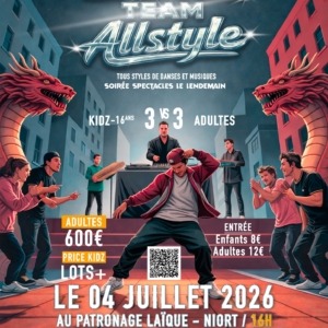 Se déroulant sur tout le week-end et à deux endroits différents: Le 04 Juillet 2026 : Au patronage Laïque de Niort – BATTLE TEAM ALLSTYLE (Battle de danse / danse ...