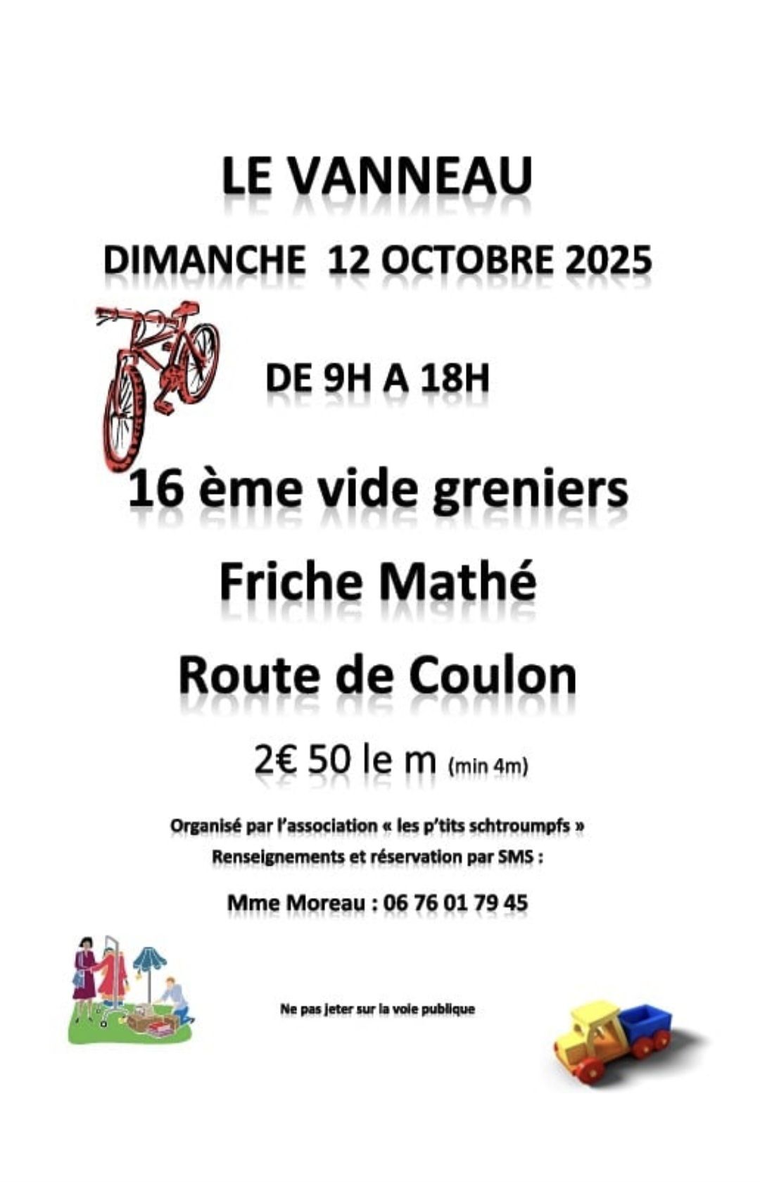 16e vide-greniers dimanche 12 octobre 2025 de 9h à 18h au Vanneau-Irleau près de Niort.