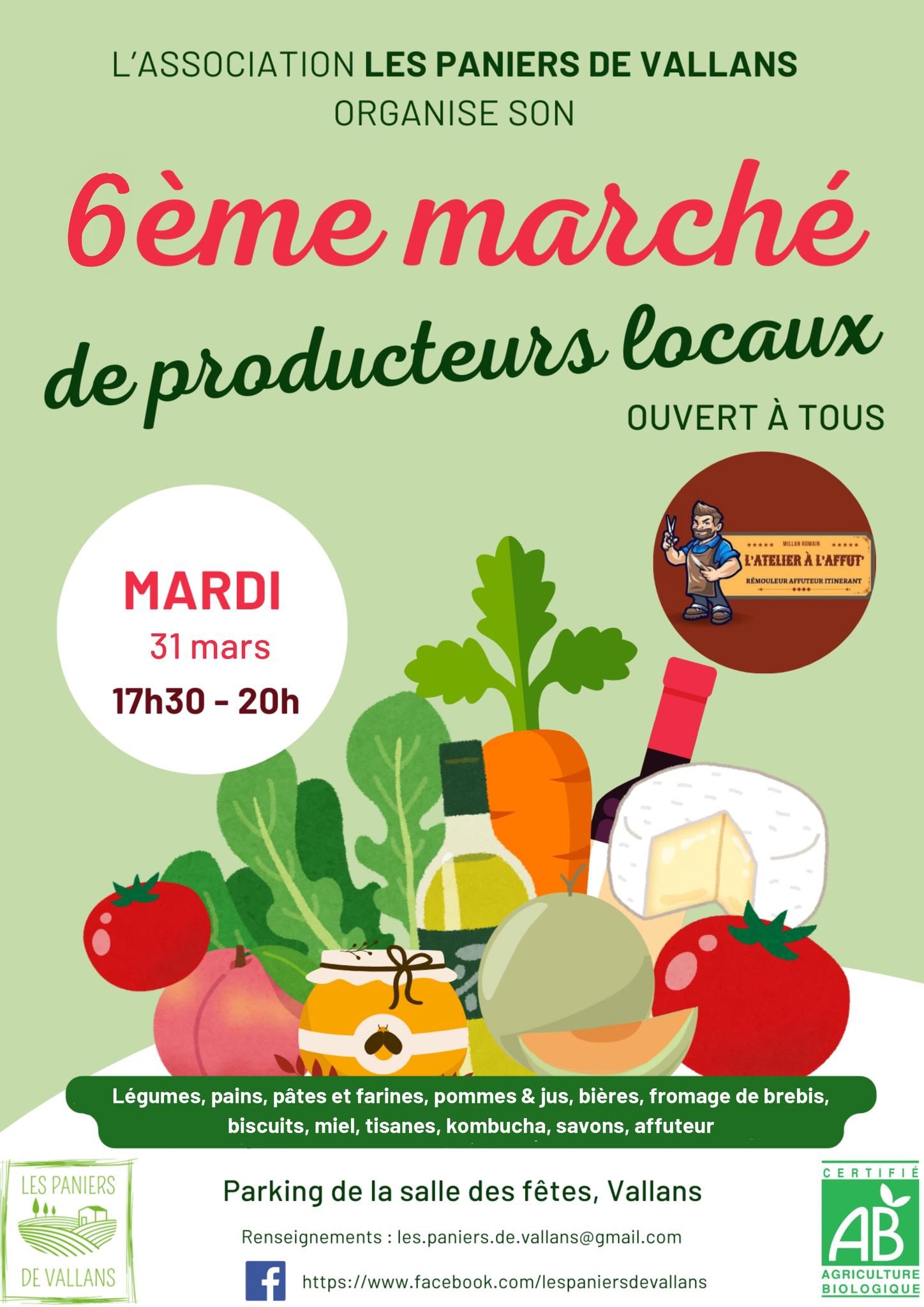 6e marché de producteurs locaux organisé par Les Paniers de Vallans mardi 31 mars 2026 de 17h30 à 20h00 Parking de la salle des fêtes de Vallans près de Niort.