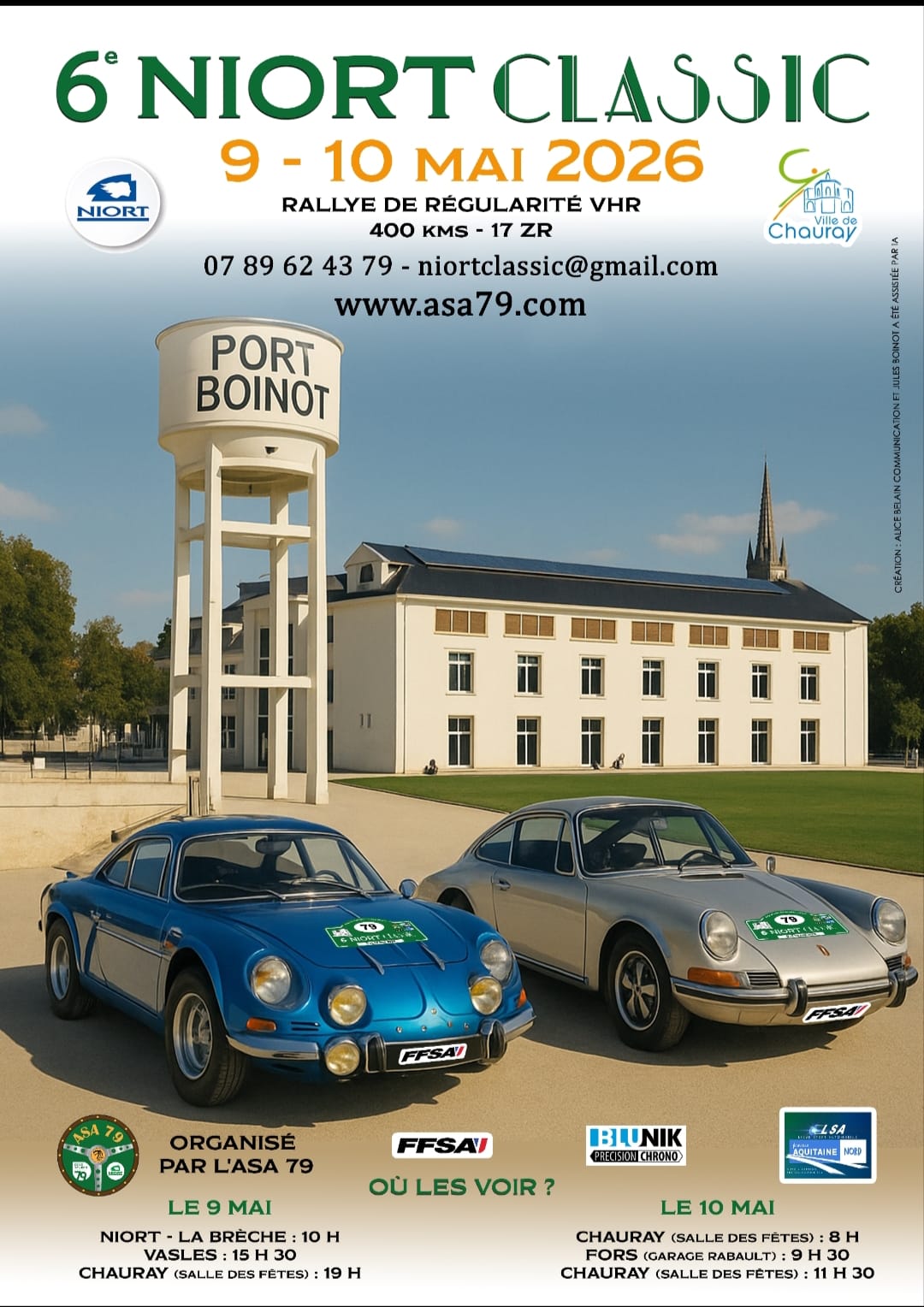 L’ASA 79 organise la 6ème édition du Niort Classic Rallye de régularité historique VHR FFSA les 9 et 10 mai 2026.