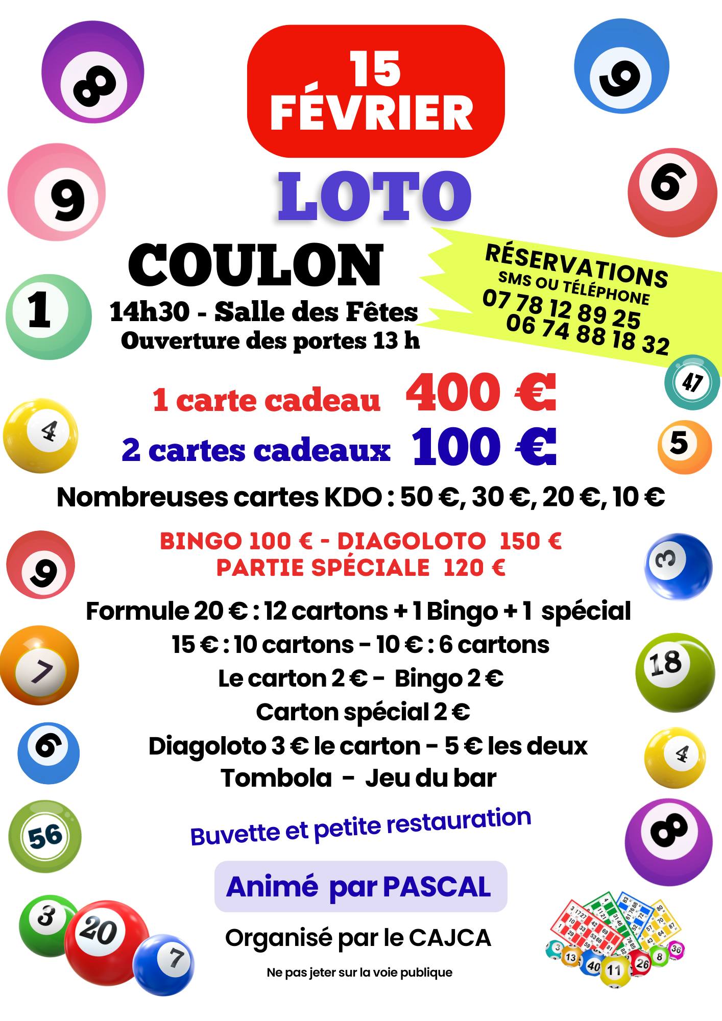 Dimanche 15 février 2026, loto organisé par le CAJCA (jumelage avec le Togo) à la salle des fêtes de Coulon (rue Gabiel Auchier) – de nombreux lots en bons d’achats. Animation assurée par Pascal.