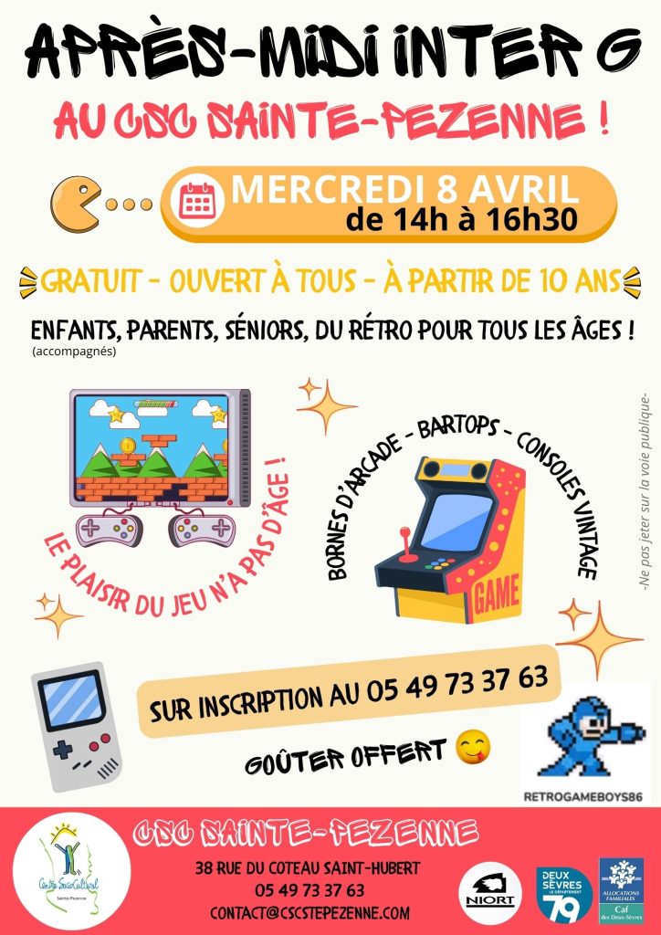 Envie d’un moment fun, surprenant et vraiment différent ? Le CSC Sainte-Pezenne vous propose une après-midi 100% jeux vidéo vintage… pour tous les âges !