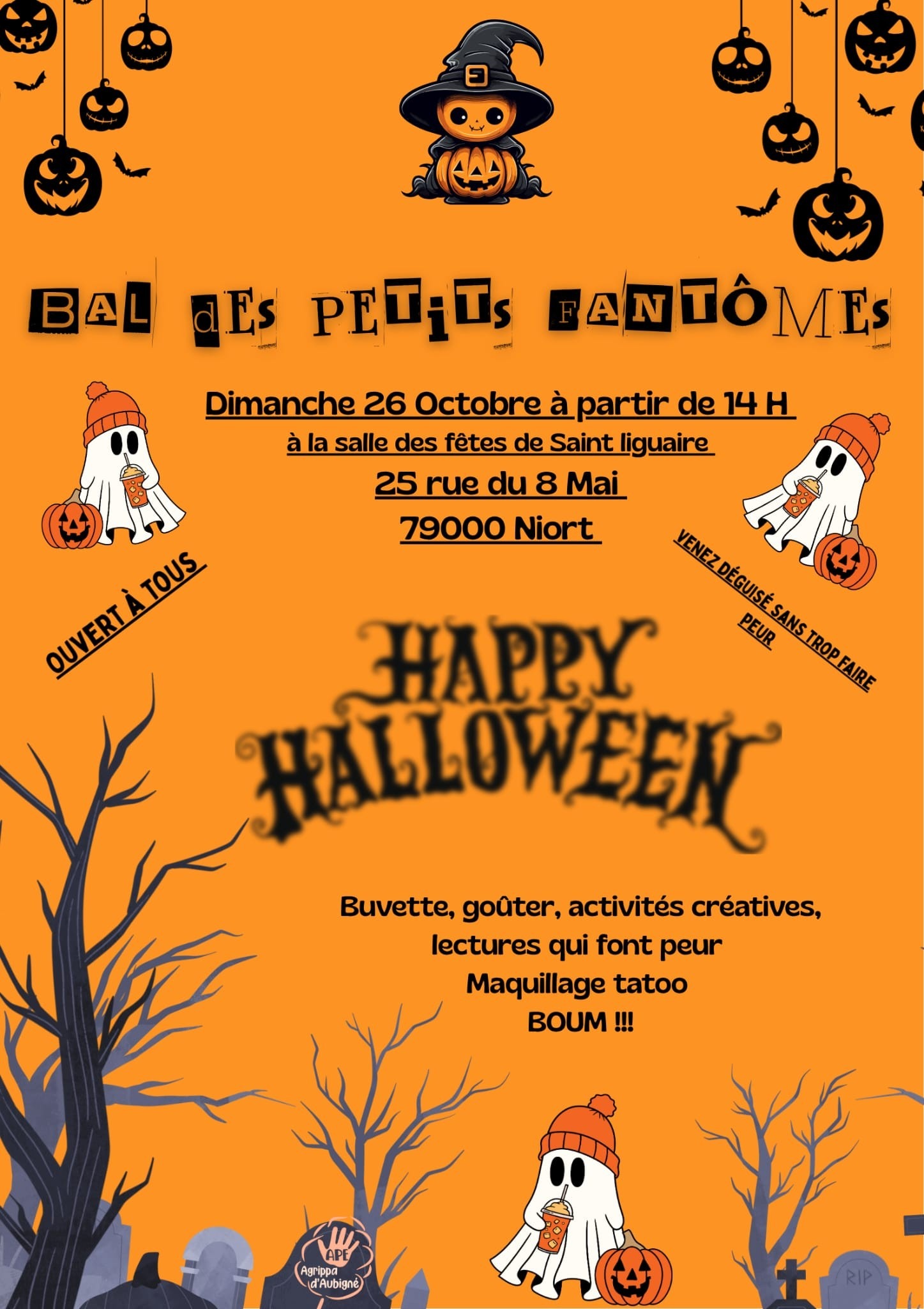 Après-midi Halloween à la salle des fêtes de St-Liguaire par l’Association des Parents d’Elèves de l’école primaire Agrippa d’Aubigné de Niort St-Liguaire dimanche 26 octobre 2025 de 14h à 17h30.