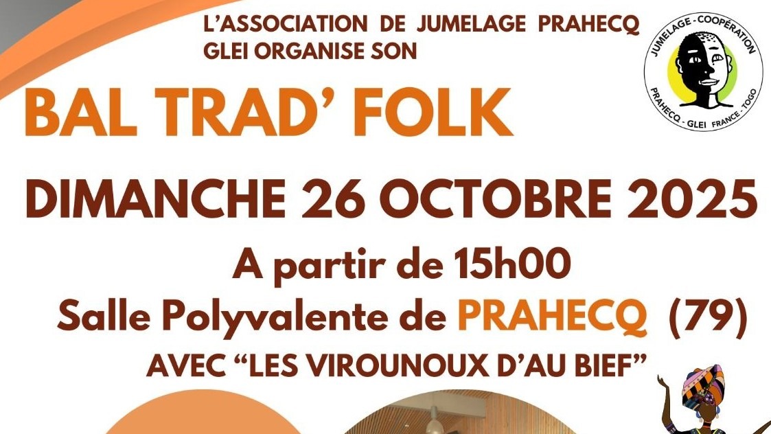 Bal Trad’ Folk organisé par l’association de jumelage Prahecq Glei dimanche 26 octobre 2025 à partir de 15h00 à la salle polyvalente de Prahecq près de Niort.