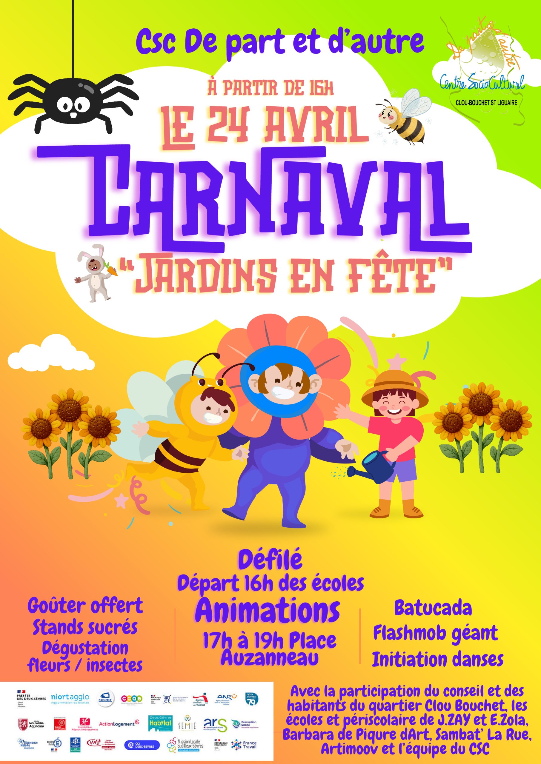 Cette déambulation festive dans le quartier se clôturera place Raoul Auzanneau autour d’un goûter gourmand, d’une dégustation originale de fleurs et d’insectes, d’une flashmob pleine d’énergie et d’une démonstration de danses urbaines avec Artimoov.