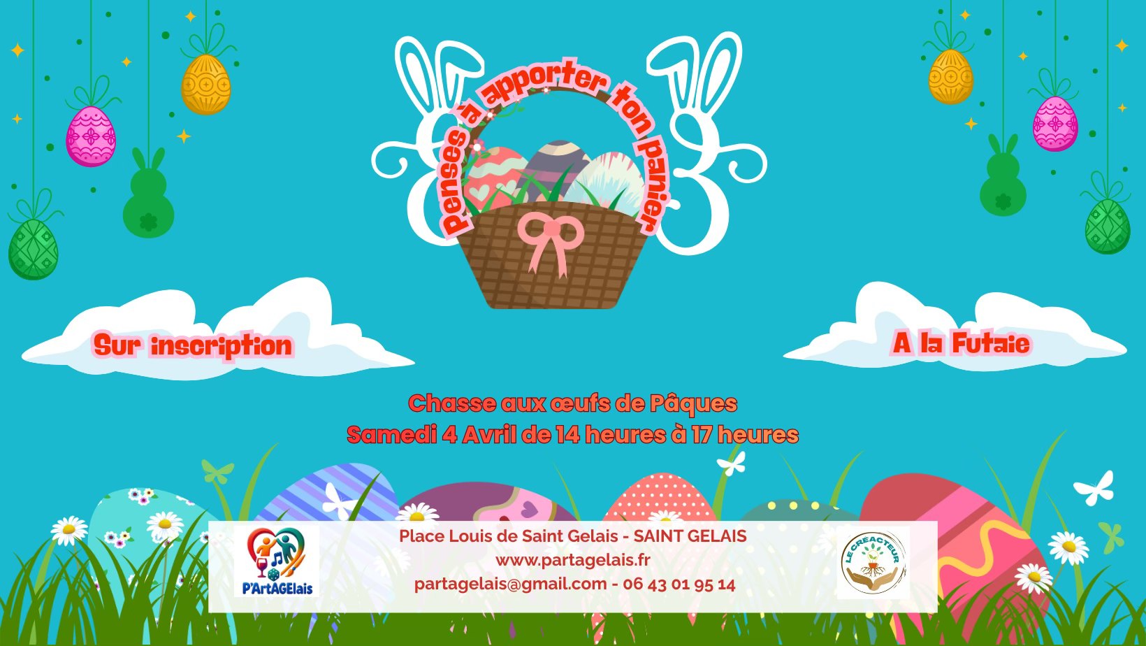 Viens chercher les œufs de pâques avec P’ArtAGElais dans le Parc de la Futaie à Saint-Gelais !