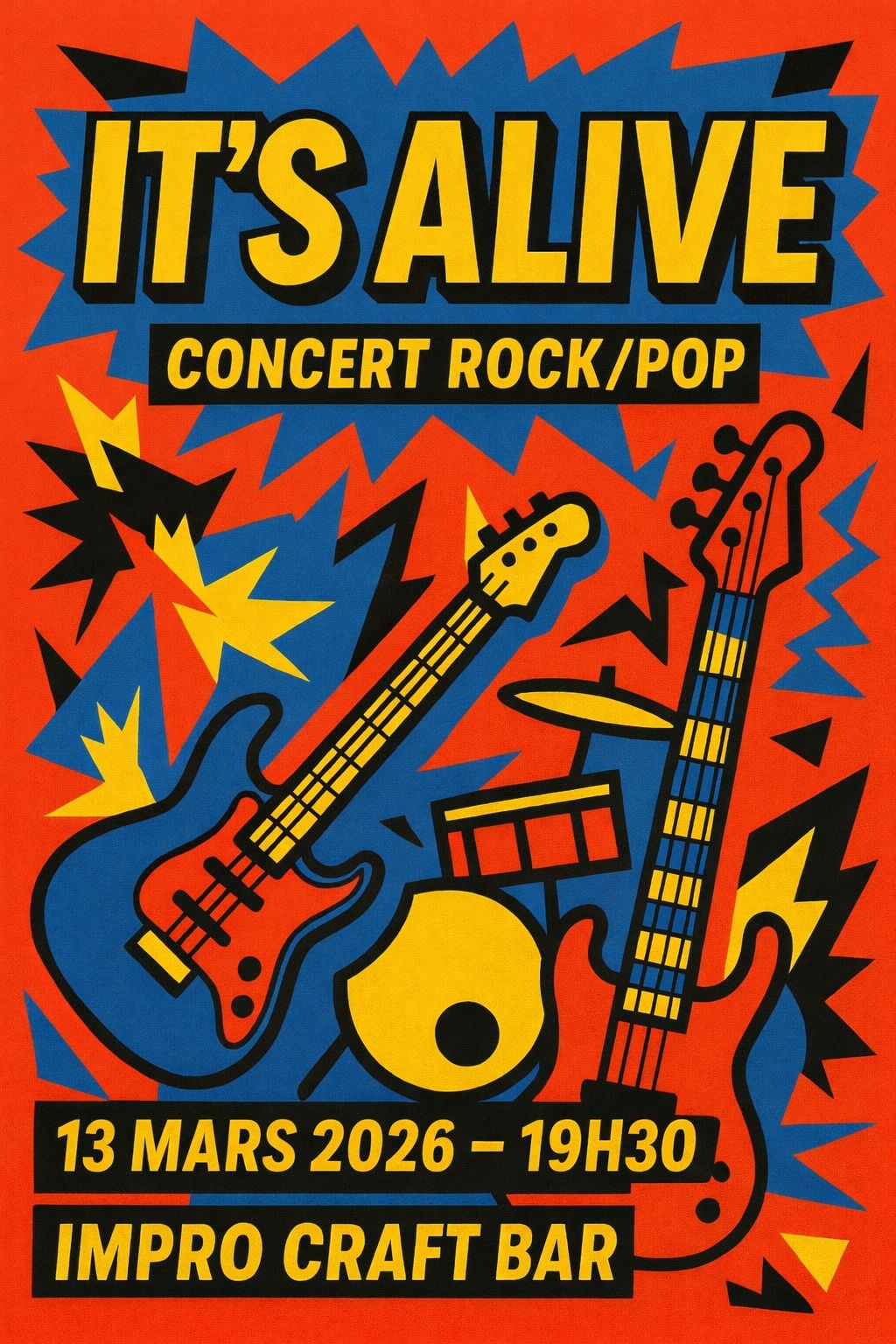 Concert Rock/Pop avec It’s Alive vendredi 13 mars 2026 à 19h30 à L’Impro Craft Bar à Niort.