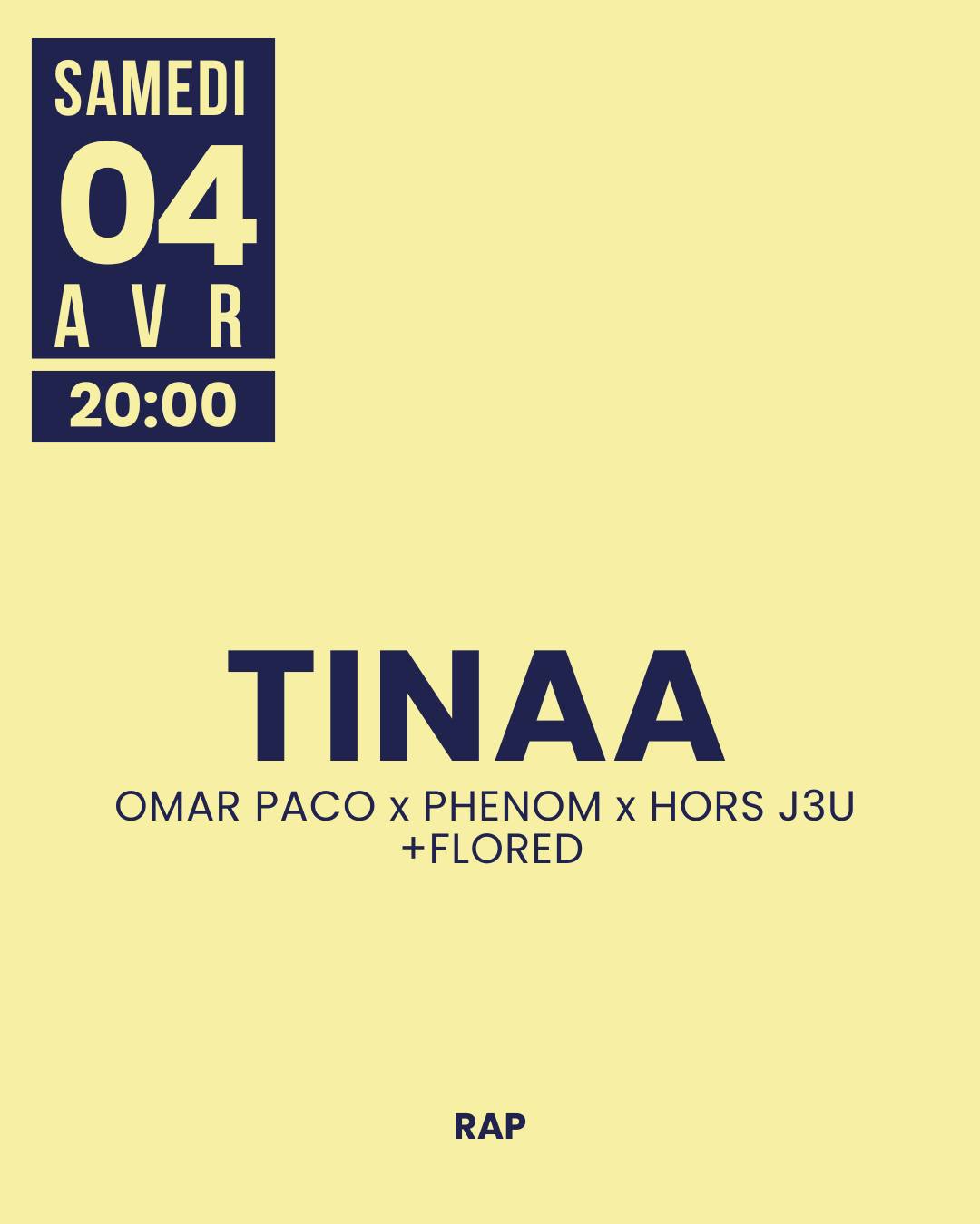Concert : Tinaa + Omar Paco x Phenom x Hors J3u + Flored