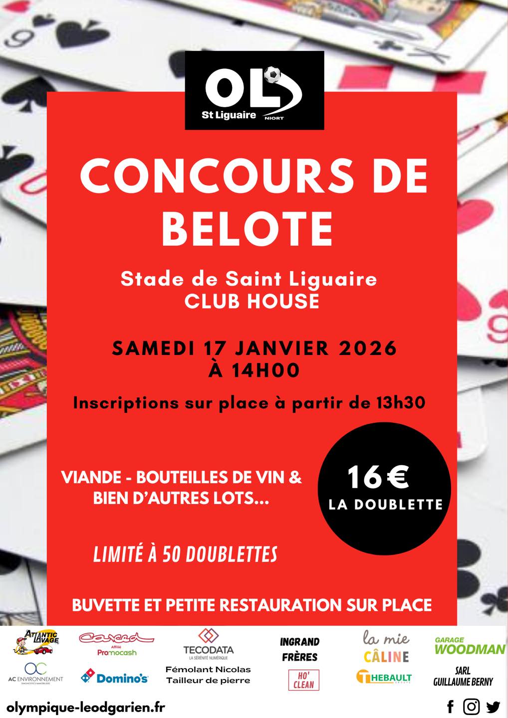 L’OL Saint Liguaire organise son 2eme tournoi de belote le samedi 17 janvier à 14h