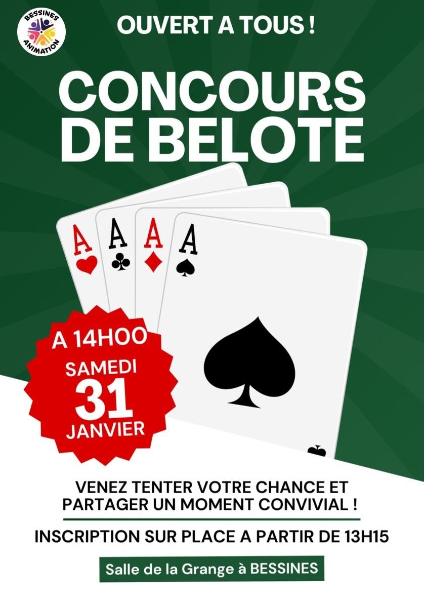 Initialement porté par le club des aînés, qui a passé le flambeau à l’association Bessines Animation, Bessines animation organise un concours de belote ouvert à tous.