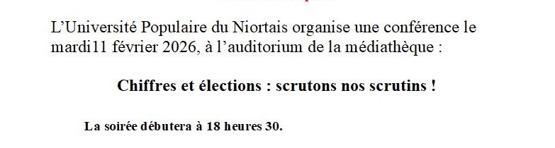 L’Université Populaire du Niortais organise une conférence le mardi 11 février 2026, à l’auditorium de la médiathèque :