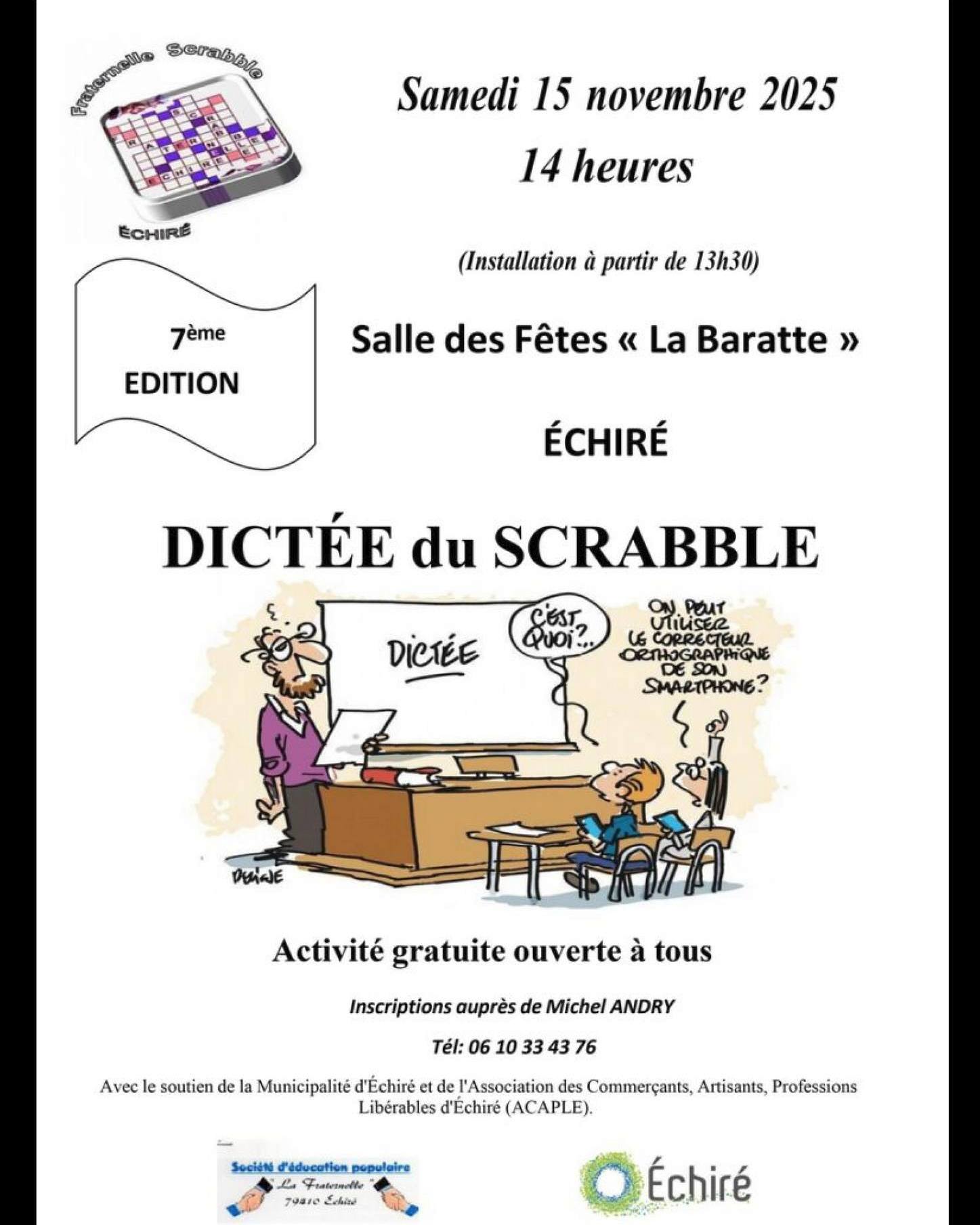 Pour la 7e fois, la Section Scrabble de La Fraternelle d’Échiré vous invite à participer à sa traditionnelle dictée.