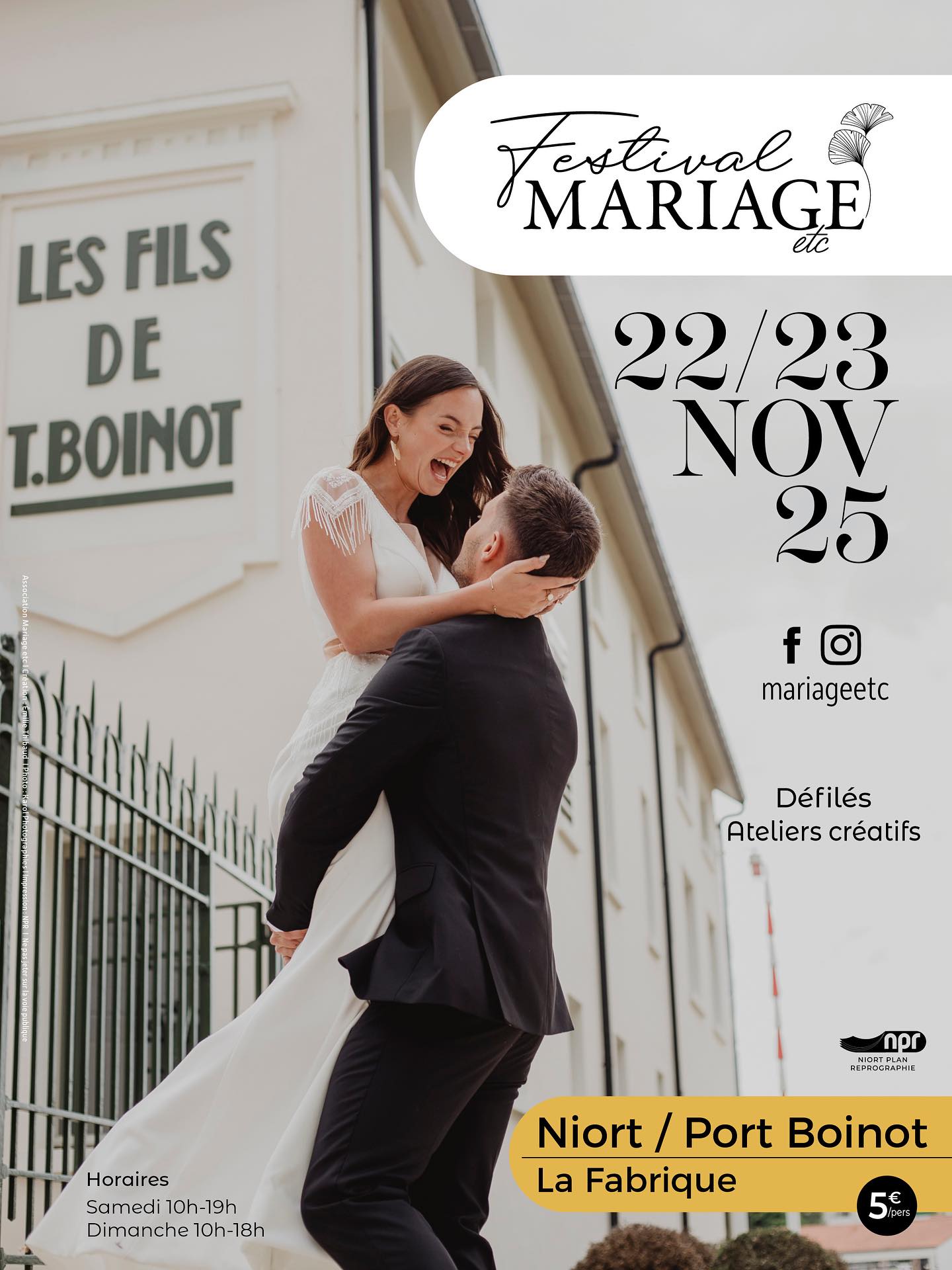 3e édition du Festival du Mariage : Mariage, etc… ! samedi 22 et dimanche 23 novembre 2025 à La Fabrique à Port Boinot à Niort.