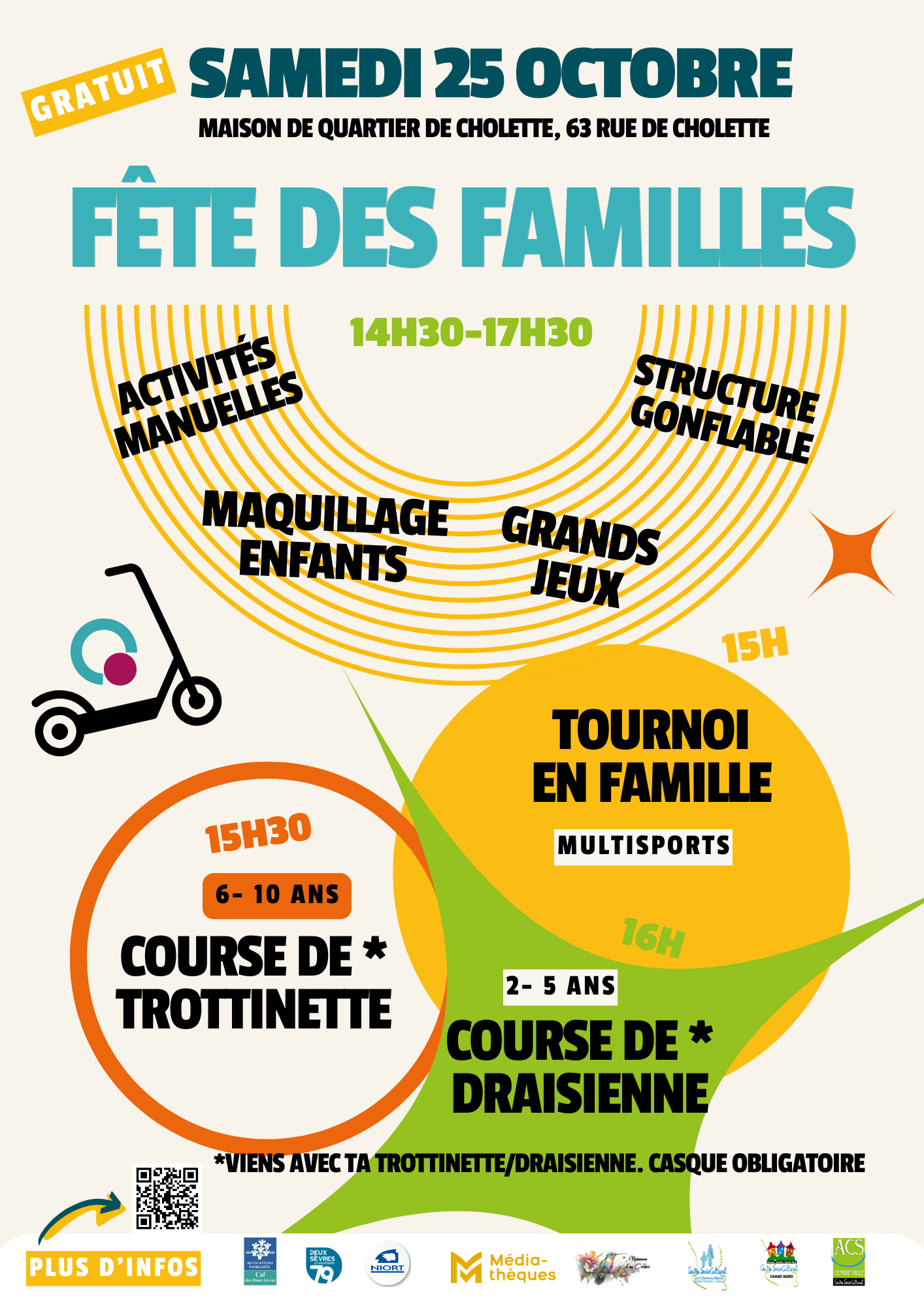 Fête des Familles samedi 25 octobre 2025 de 14h30 à 17h30 à la Maison de Quartier de Cholette à Niort.