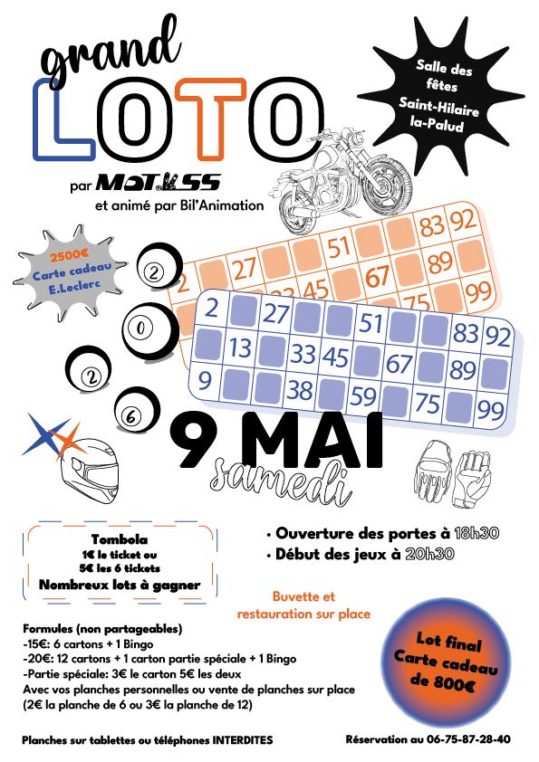 Grand Loto le samedi 9 mai 2026. Ouverture des portes à 18h30.