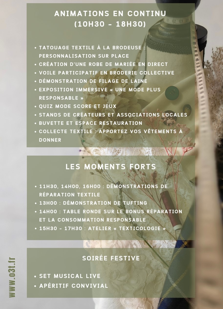 – Animations en continu : exposition immersive, quiz textile, personnalisation de vêtements, collecte de textile