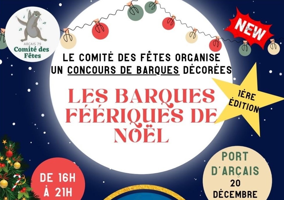 Direction la Place de l’Eglise à Arçais près de Niort pour la 1ère édition du concours de barques décorées « Les barques féeriques de Noël » le 20 décembre à partir de 16h00 et jusqu’à 21h00.