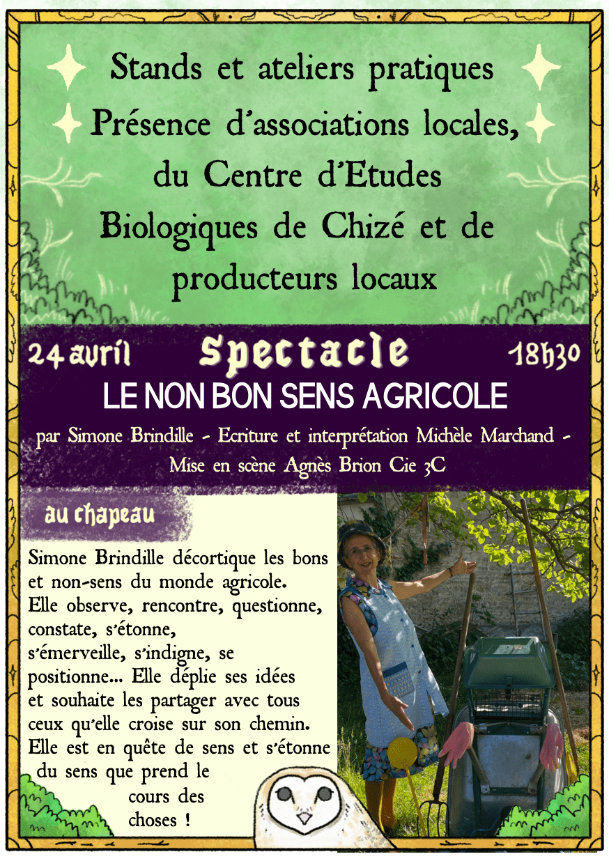 Le 24 avril, ce sera Simone Brindille qui nous présentera sa capsule théâtrale intitulée « Le non bons sens agricole » (écriture et interprétation par Michèle Marchand).