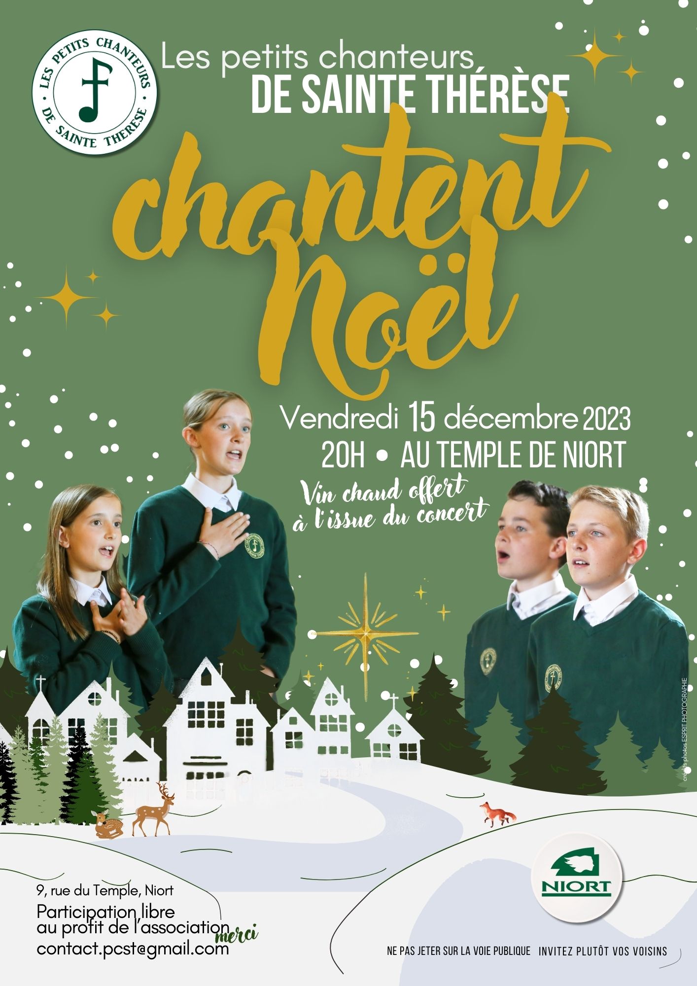 Les petits chanteurs de sainte Thérèse chanteront Noël le vendredi 15 décembre 2023 à 20h00 au Temple de Niort.