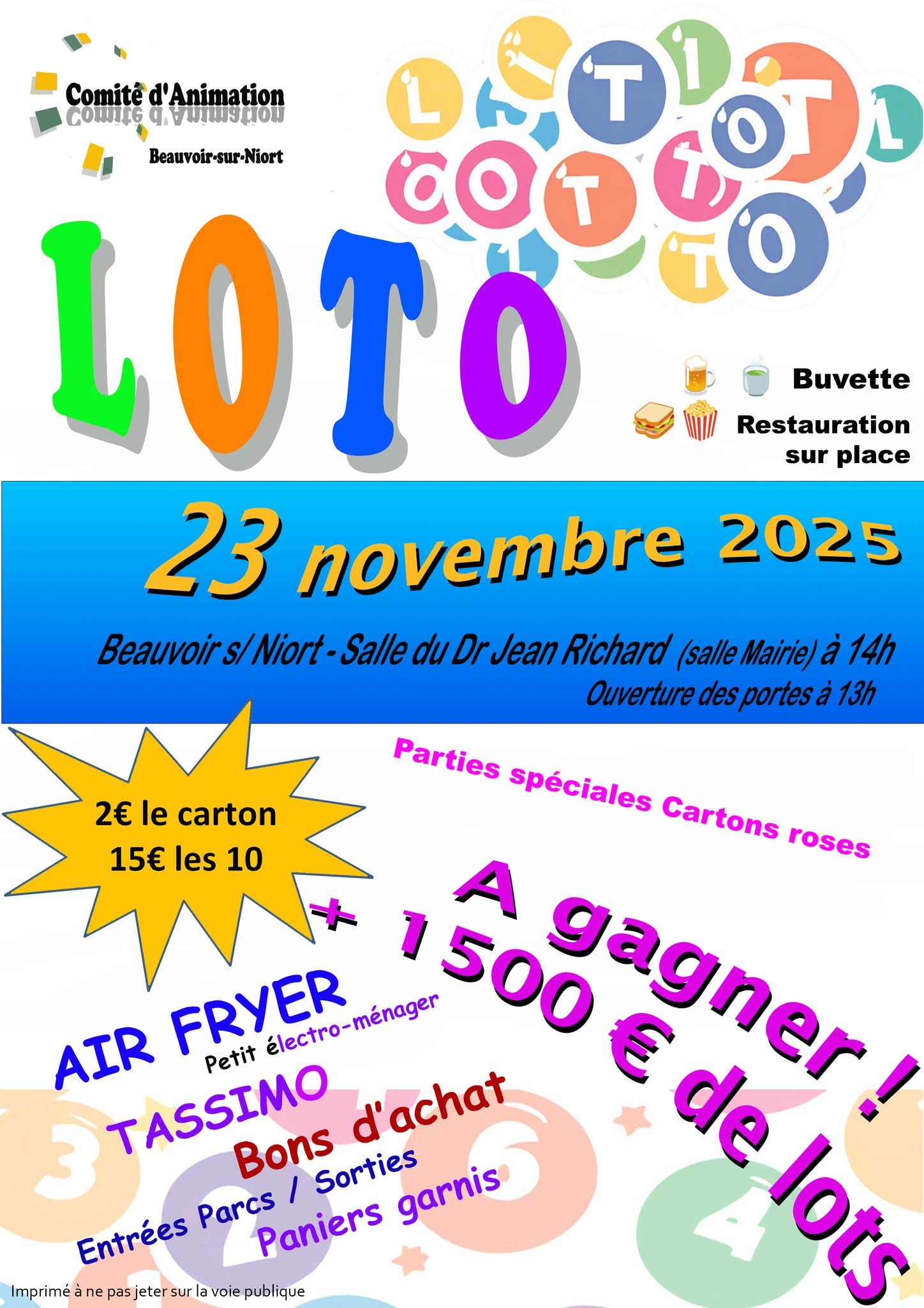 Le Comité d’Animation de Beauvoir-sur-Niort vous propose son LOTO annuel le 23/11/2025 !