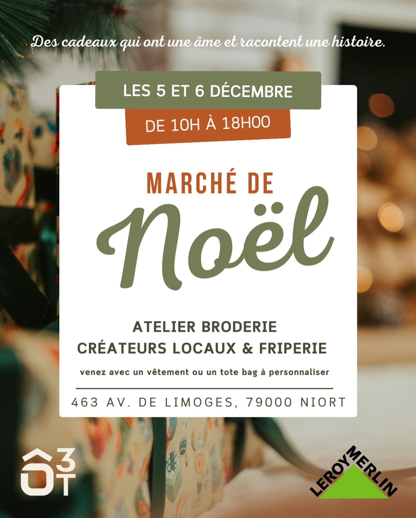 Cette année, on vous propose un événement tout à fait inédit : en collaboration avec @leroymerlinniort, Ô3T organise un marché de Noël créateur directement à l’entrée de leur magasin