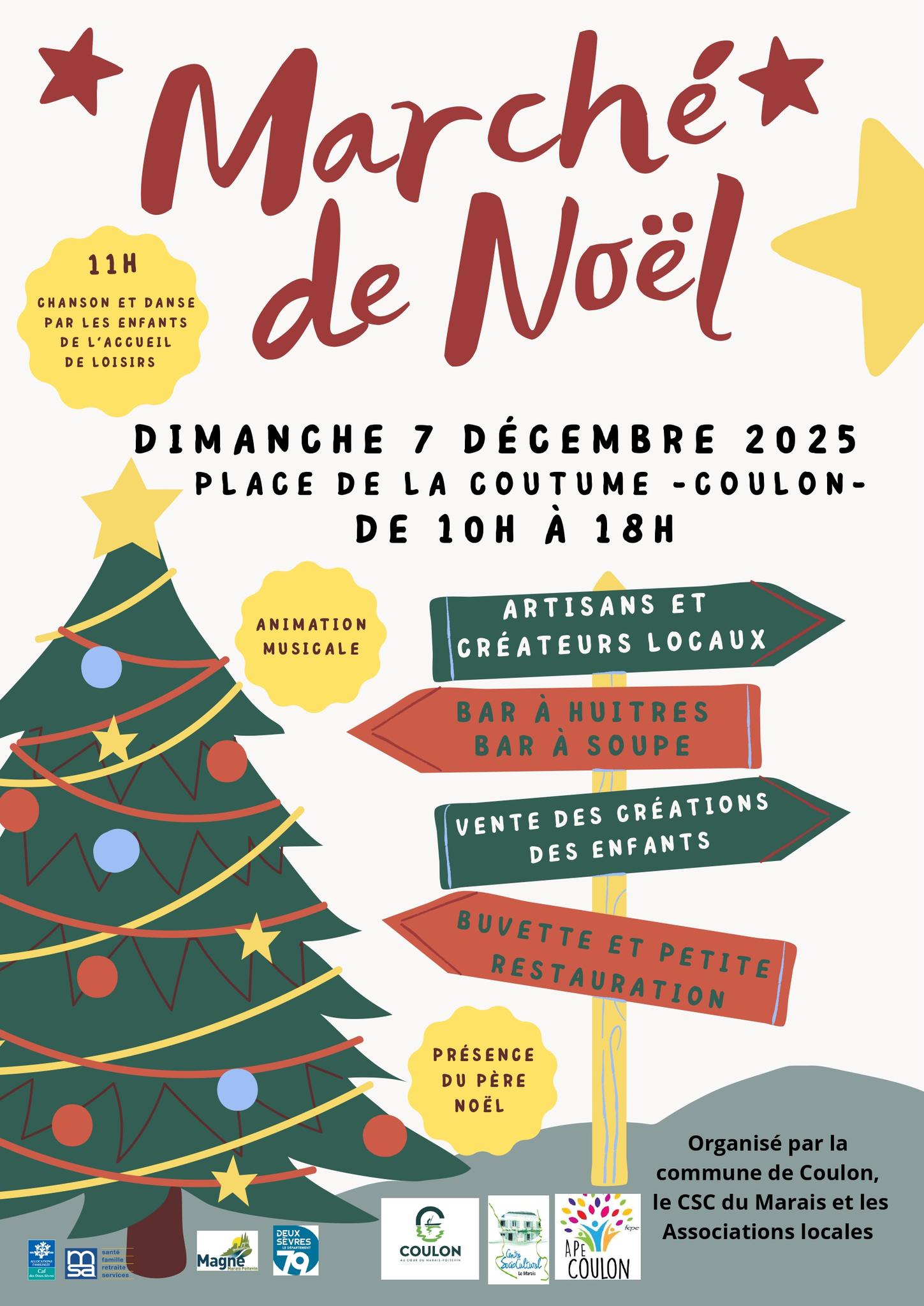 Marché de Noël de Coulon dimanche 7 décembre 2025 de 10h00 à 18h00 sur le site de la Maison Pour Tous à Coulon près de Niort.