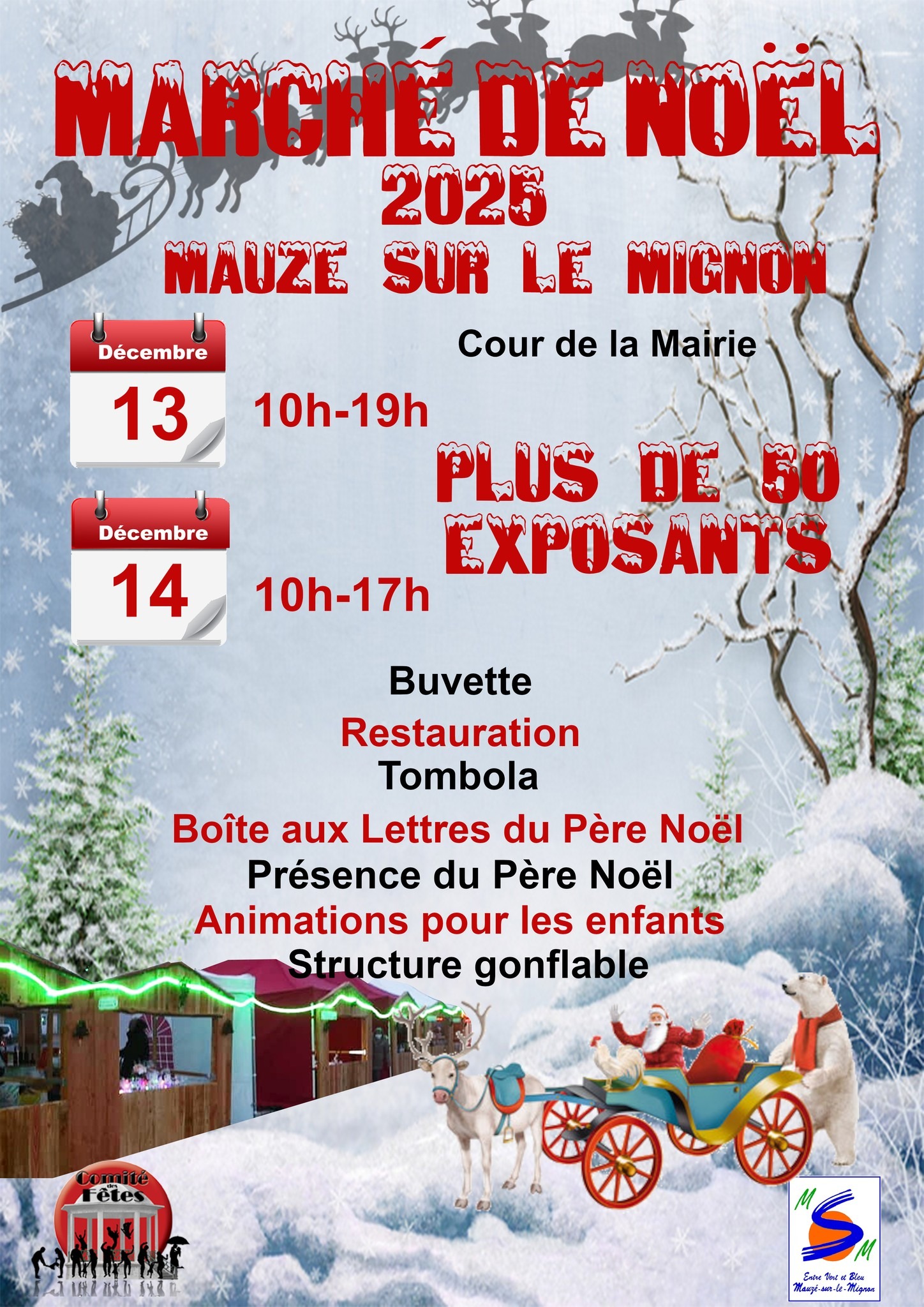 Mauzé-sur-le-Mignon près de Niort organise son Marché de Noël samedi 13 et dimanche 14 décembre 2025 dans la cour de la Mairie.