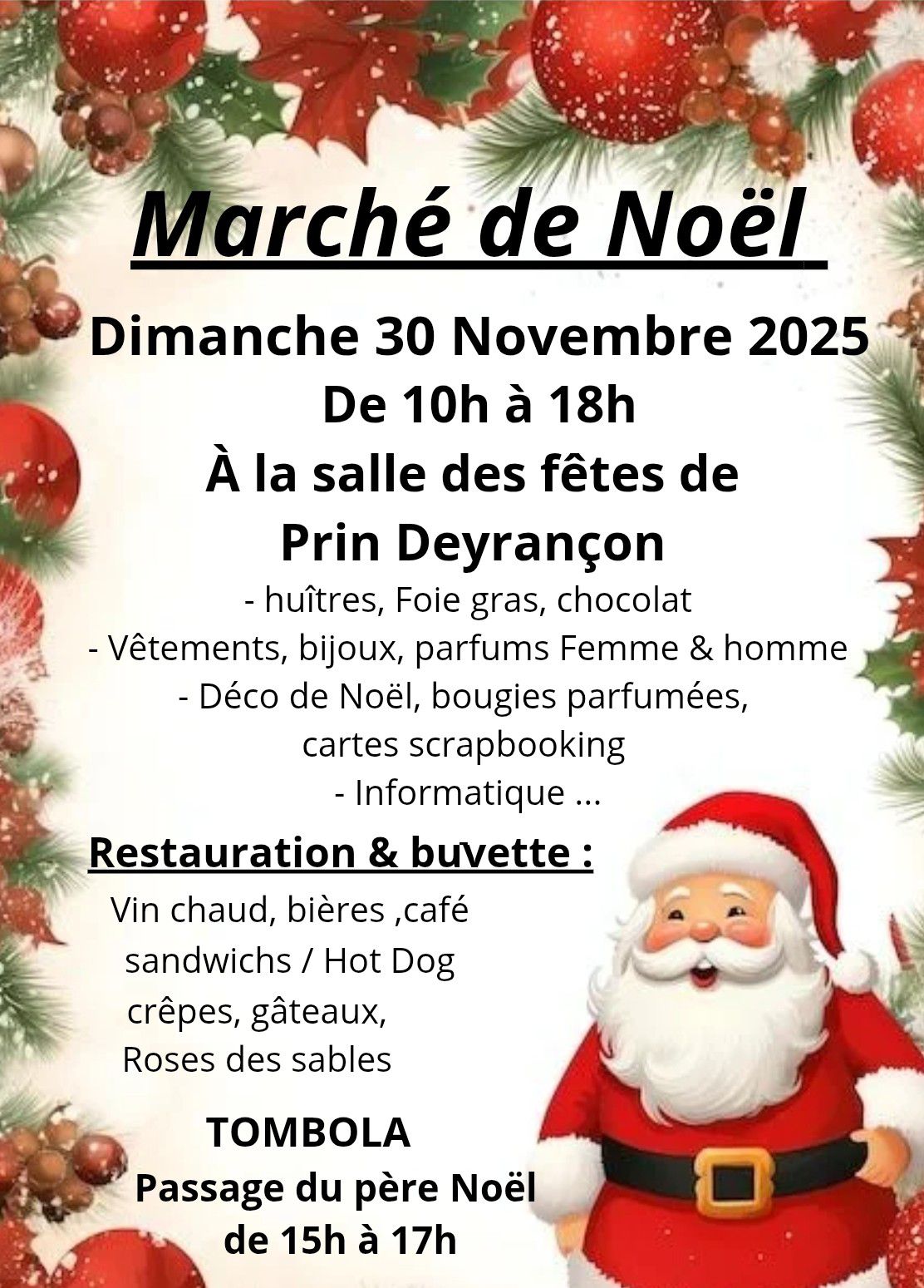 Venez nombreux au Marché de Noël de Prin-Deyrançon (à la salle des fêtes) qui se déroulera le dimanche 30 novembre 2025 de 10h à 18h.