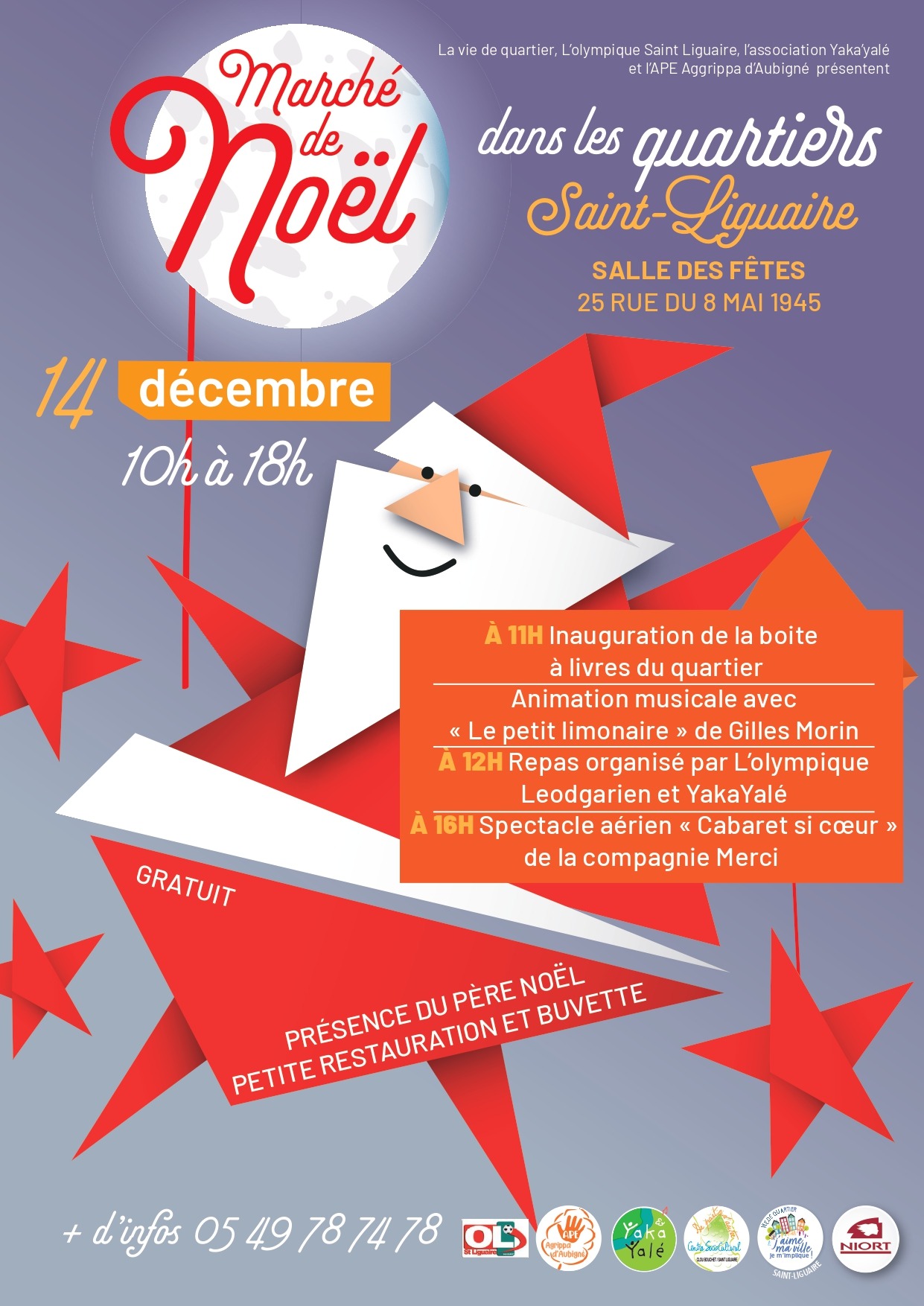 La Vie de quartier de Saint Liguaire, soutenue par la Ville de Niort et en collaboration avec les associations du quartier (OL St Liguaire football – Niort ; Yaka Yalé ; Ape Agrippa d’Aubigné Niort ; APEL École Ste Macrine – Niort et le Csc de part et d’autre) vous invite à son marché de Noël 2025 !