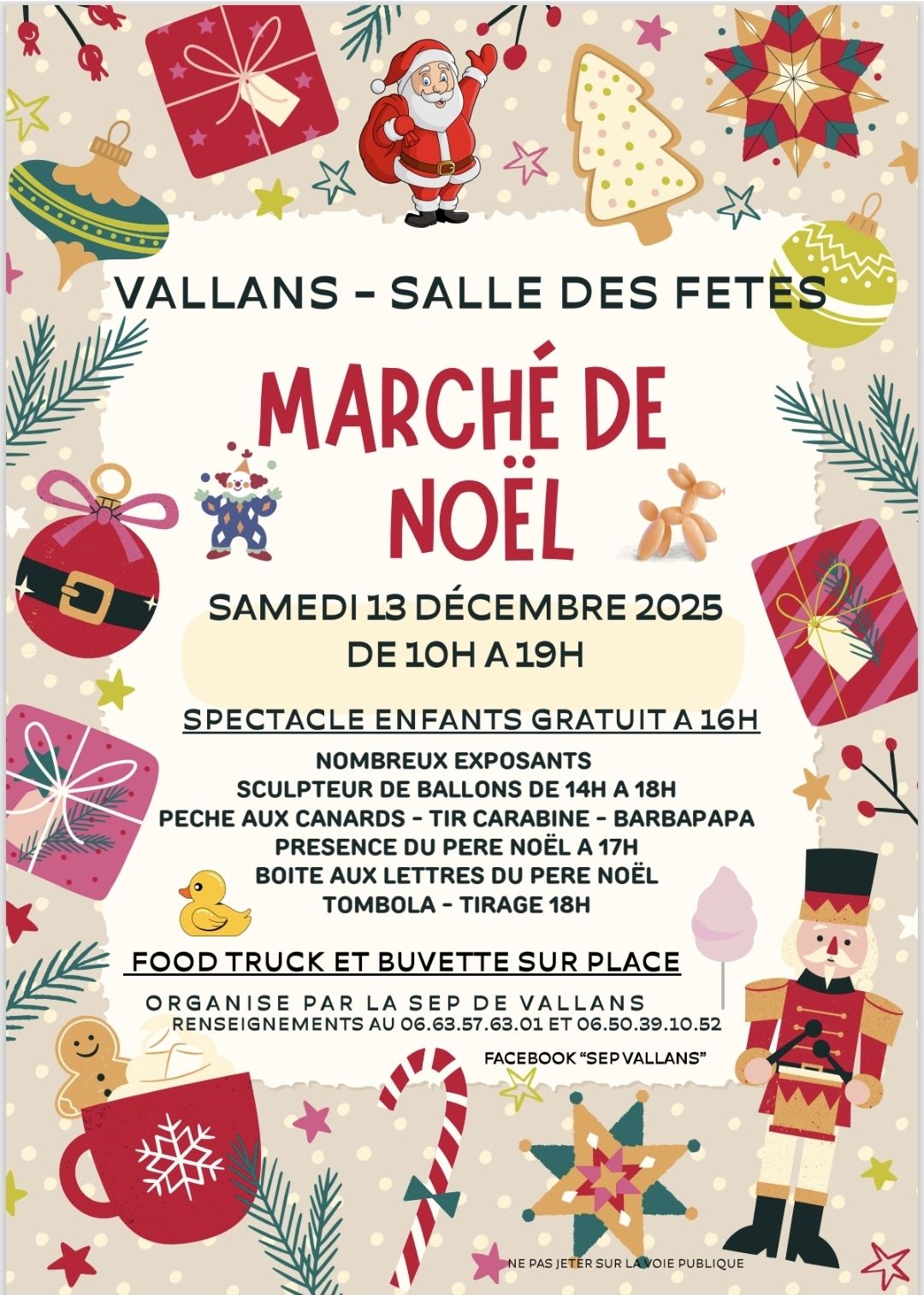 Marché de Noël de Vallans samedi 13 décembre 2025 de 10h00 à 19h00 à la salle des fêtes de Vallans près de Niort.