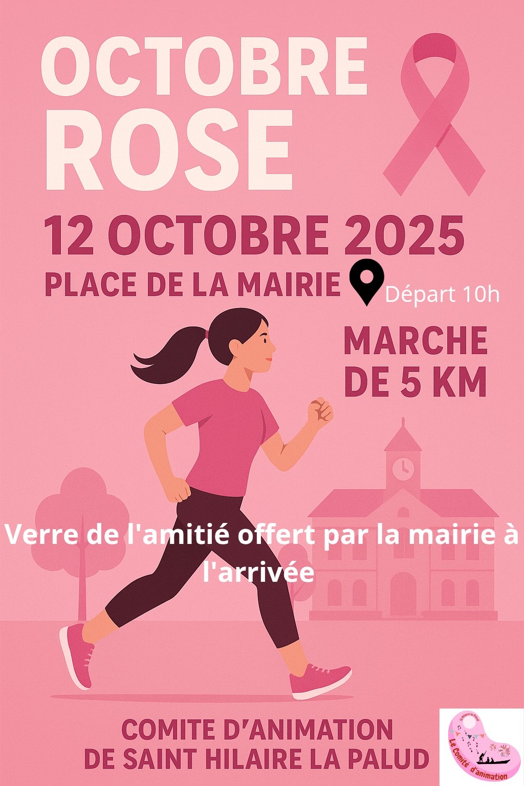 Le dimanche 12 octobre 2025, retrouvons-nous à 10h sur la place de la mairie de Saint Hilaire la Palud pour une marche conviviale de 5 km.
