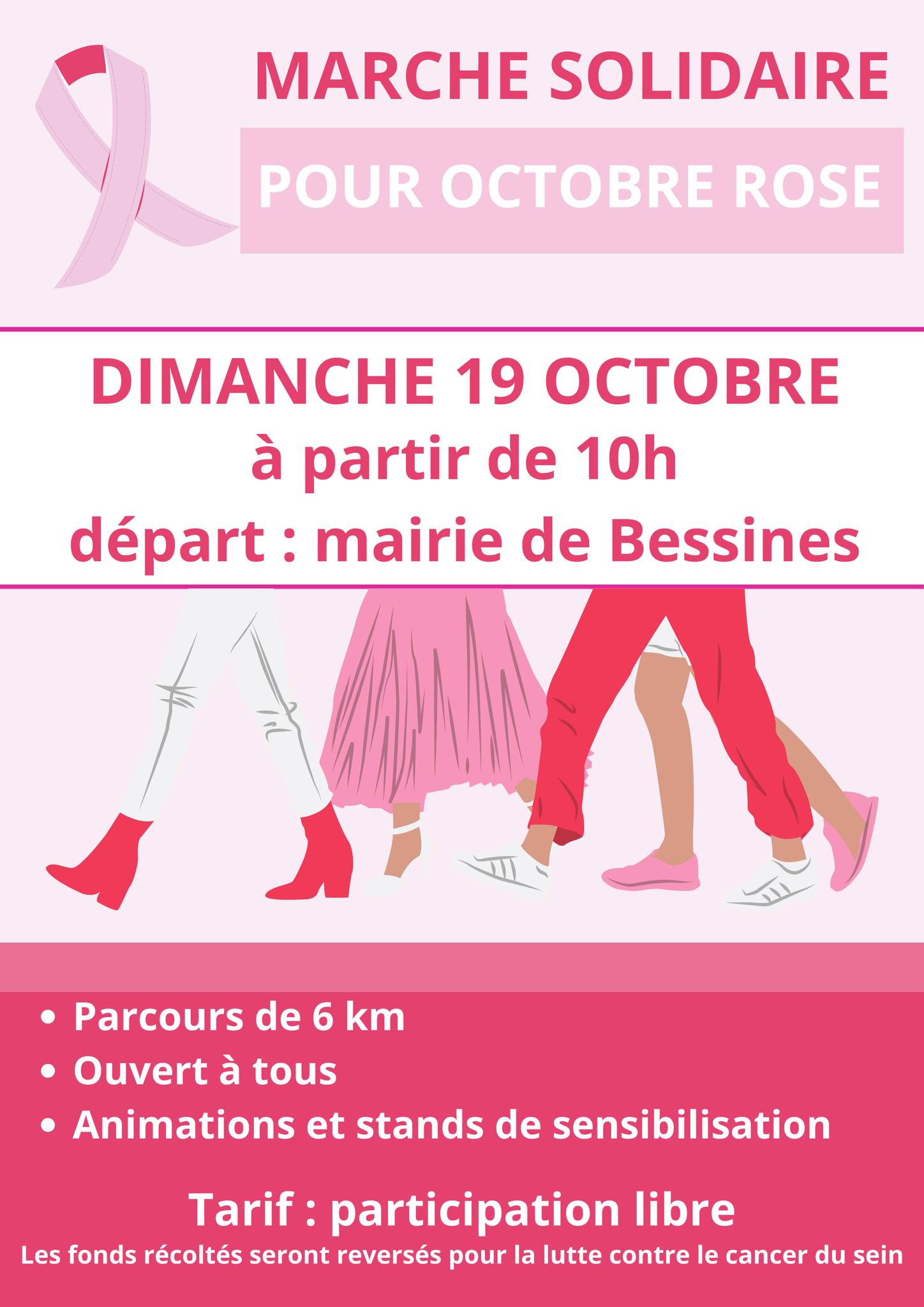 Le CCAS de Bessines organise, pour la 3ème année consécutive une marche solidaire dans le cadre d’Octobre Rose, et pour la lutte contre le cancer du sein.