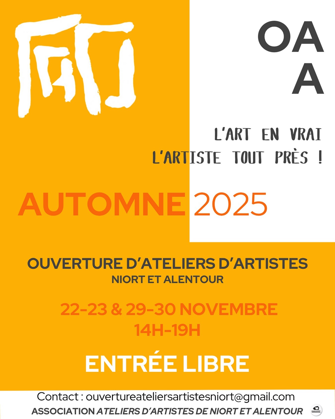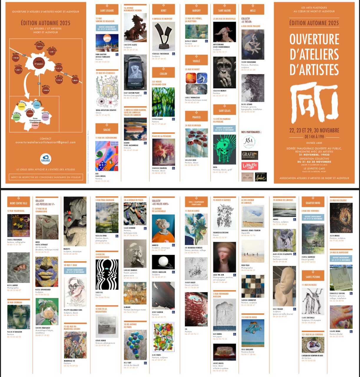 Rendez-vous les 22 et 23 novembre puis le 29 et 30 novembre 2025 pour l’ouverture d’ateliers d’artistes à Niort et ses alentours.