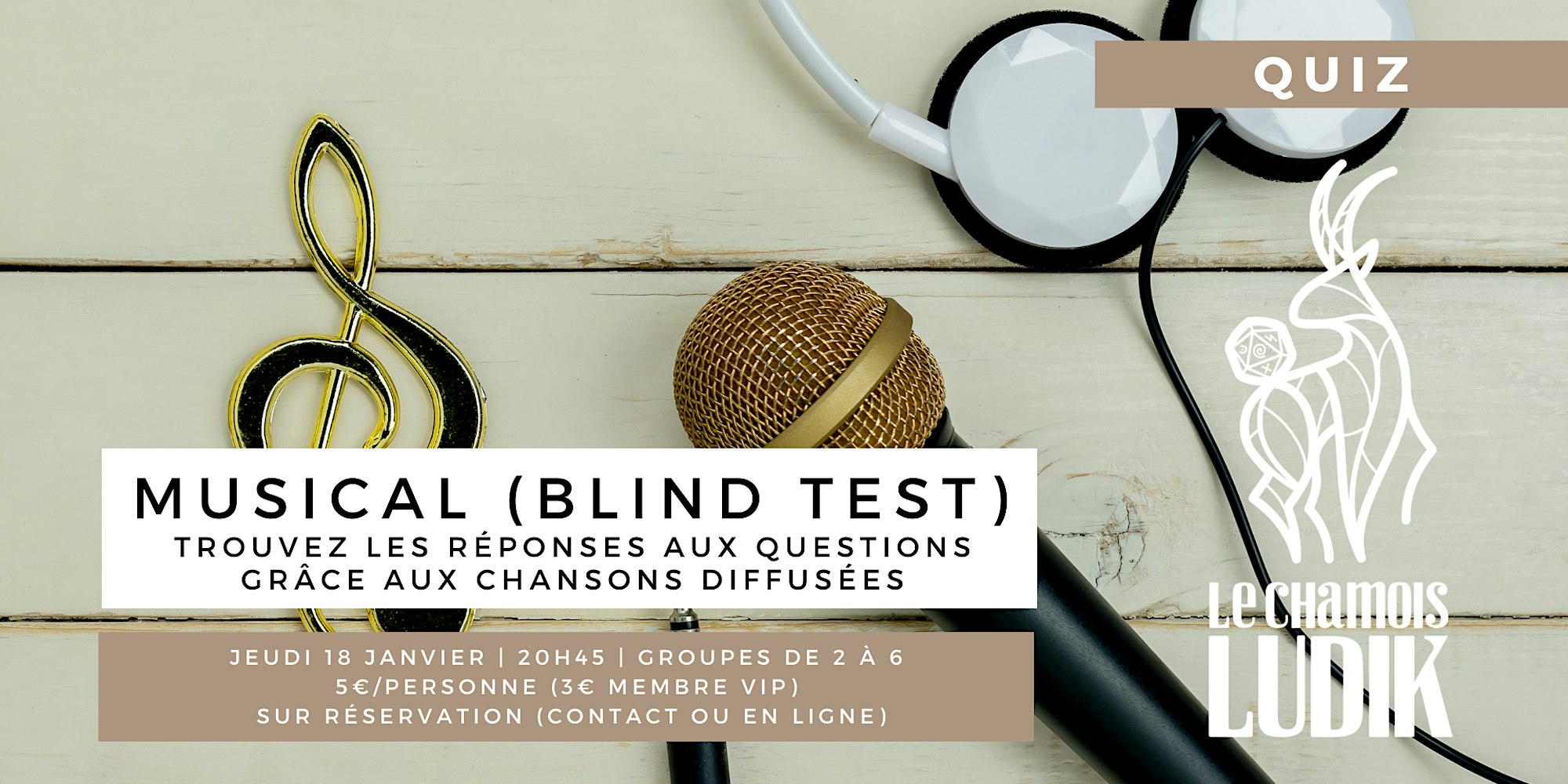 Inscription de 5€/personne, 3€ membres VIP.