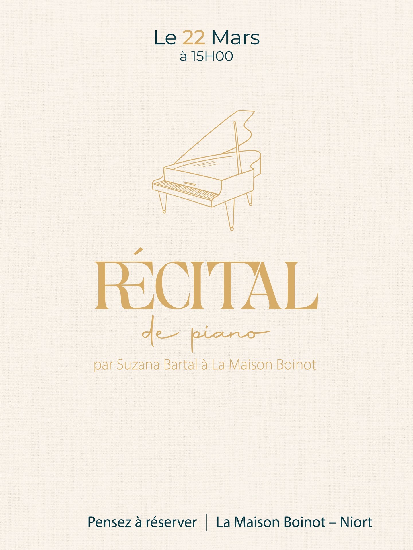 Récital de la pianiste Suzana Bartal, dans un programme virtuose Liszt et Schumann dimanche 22 mars 2026 à 15h00 à l’auditorium de La Maison Boinot à Niort.