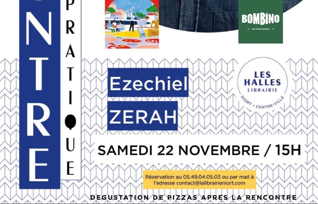 Alors, amoureux de pizza, cuisiniers amateurs ou professionnels rendez-vous le 22/11 à 15h à la Librairie des Halles à Niort.