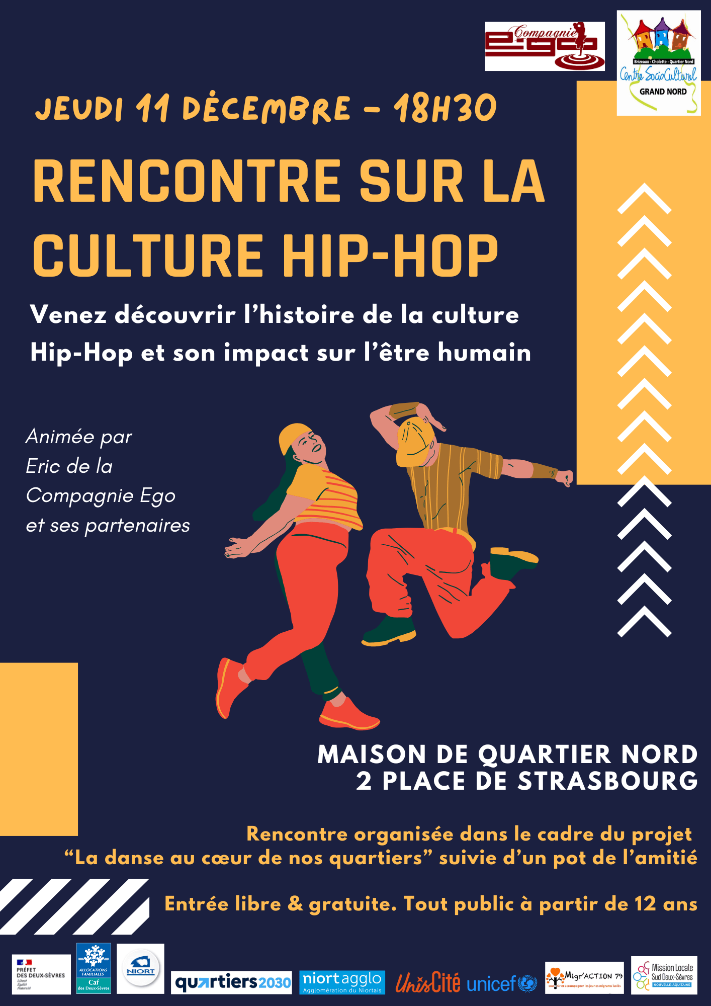 Rencontre sur la culture Hip-Hop jeudi 11 décembre à 18h30 à la Maison de quartier Nord à Niort.