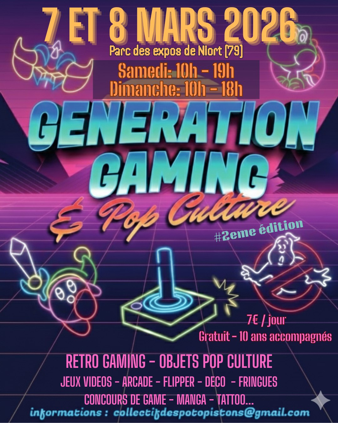 Salon Génération Gaming et Pop Culture samedi 7 et dimanche 8 mars 2026 au Parc des Expositions de Niort.