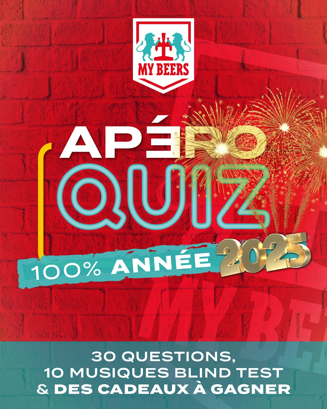 Actus, sport, musique, cinéma, buzz, moments insolites… tout y passe lors de notre Apéro Quiz spécial 2025 chez My Beers