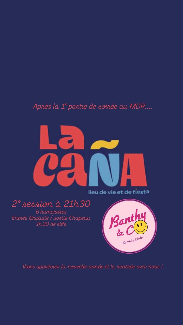 Date exceptionnelle au bar La Cana pour une 2ème partie de soirée incroyable avec 6 humoristes locaux ou presque, un dj et une ambiance digne d’un Comedy Club parisien, le sourire en plus !