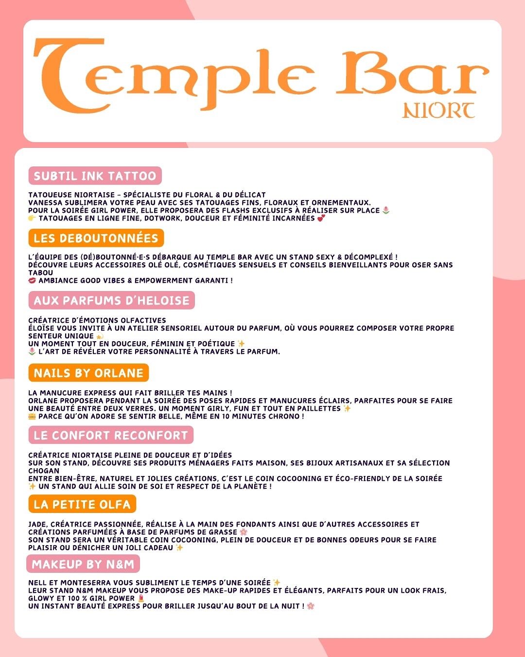 Au programme : tatoueuse, maquillage, manucure, senteurs, bijoux, ateliers parfumés, stand sexy et créations locales