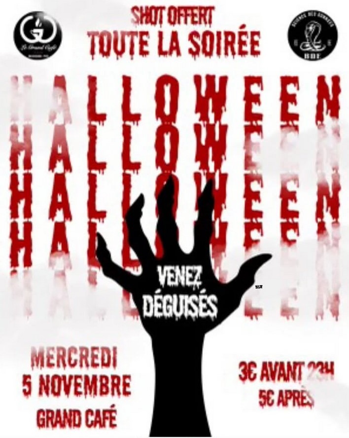 Soirée Halloween mercredi 5 novembre 2025 à partir de 22h00 au Grand Café à Niort.