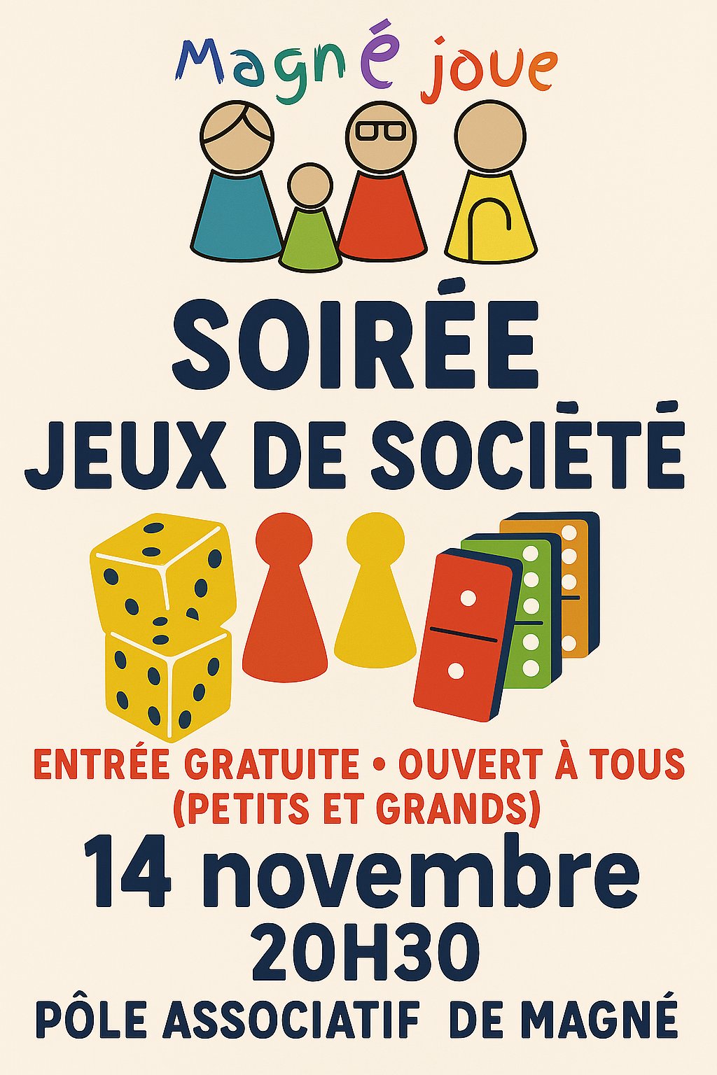 L’association Magné Joue vous propose une soirée jeux de société le vendredi 14 novembre 2025.