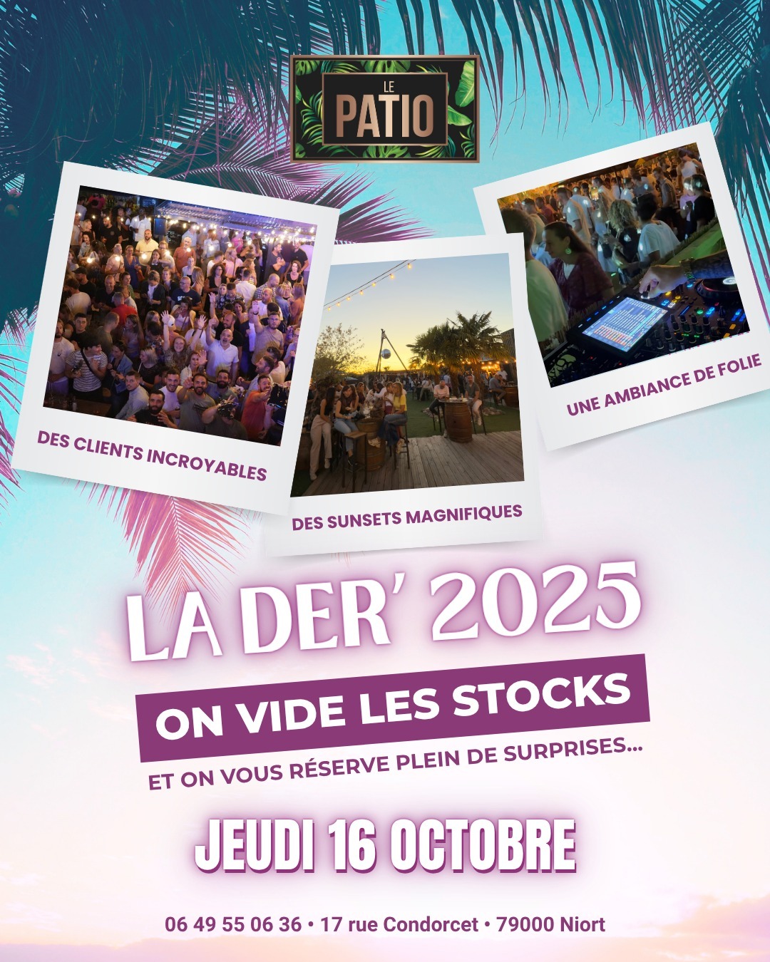 Voilà… le moment qu’on redoute tous arrive : la dernière soirée de la saison au Patio . Après un été incroyable passé ensemble, il est temps de se retrouver une dernière fois pour finir en beauté.