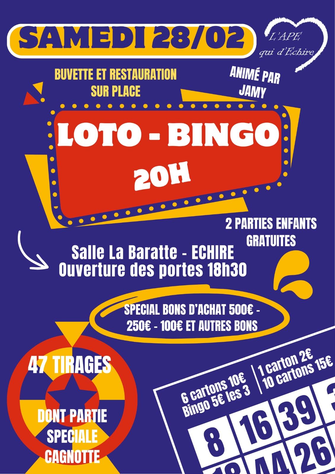 Rendez-vous samedi 28 février 2026 à La Baratte pour un Loto Bingo.