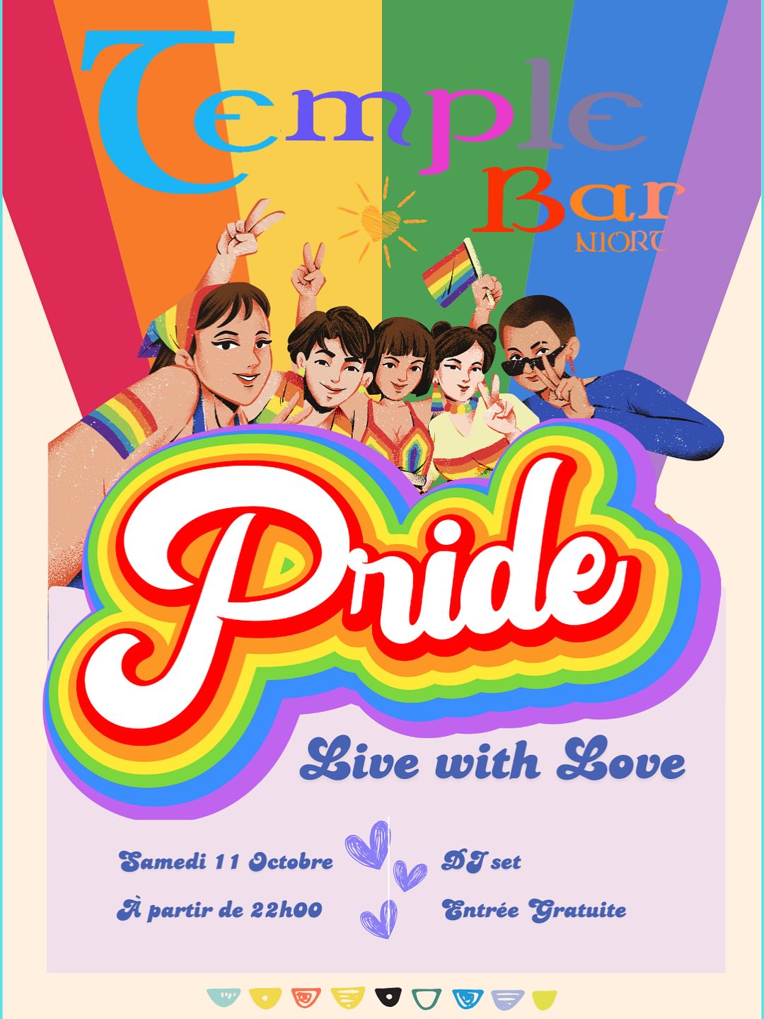 Soirée Pride Night samedi 11 octobre 2025 à partir de 22h00 au Temple Bar à Niort.
